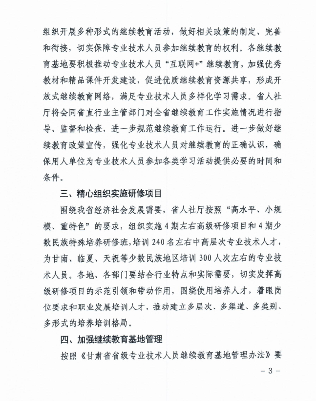 甘肃省人社厅关于做好2020甘肃专业技术人员继续教育有关事项通知