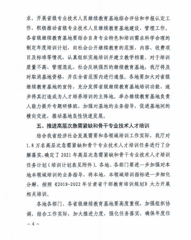 关于做好2021年甘肃省专业技术人员继续教育工作的通知