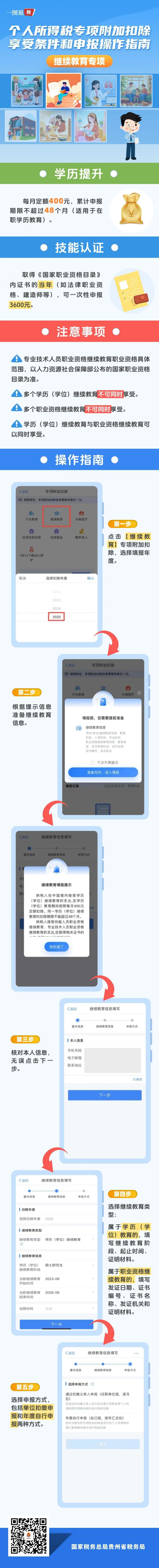 「一图说税」继续教育专项附加扣除享受条件和申报指南